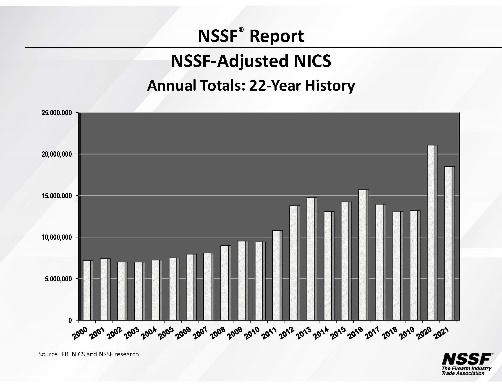 “The fact that over 18.5 million Americans chose lawfully purchase a firearm in 2021 is indicative the value Americans hold of the Second Amendment right to keep and bear arms,” Mark Oliva, a spokesman for the National Shooting Sports Foundation (NSSF), which did the analysis, said in a statement.