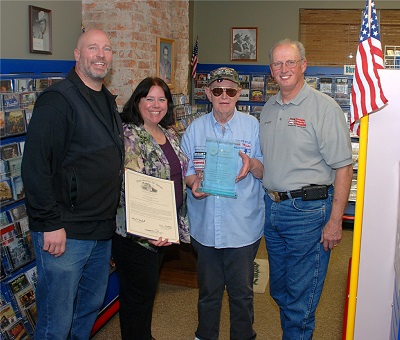 Buckeye Firearms Association (BFA) leader and NRA Board of Directors member Linda Walker presented an Honorary Lifetime Buckeye Firearms Association membership to Pyle. Sean Maloney, BFA leader and gun rights attorney, presented a plaque from BFA honoring his service. I had the pleasure to present a proclamation from the Ohio House of Representatives sponsored by Rep. Bob Hackett, whose district includes Xenia where the radio broadcast center is located, and Rep. Cliff Rosenberger, who is Pyle's State Representative in Clinton County.