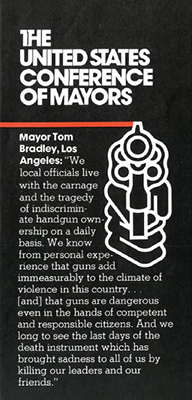 In the 1970s, the USCM held multiple national forums on handgun control and launched the Handgun Control Project, which was bankrolled by the George Gund Foundation and served to advance USCM’s gun control efforts. The project produced anti-gun books, pamphlets, and a gun control newsletter titled “Targeting in on Handgun Control.” The project also provided support to gun control activists. At their 1979 National Conference on Handgun Violence, USCM voted to create the National Alliance for Handgun Control Organizations in order to better coordinate state and local anti-gun efforts.