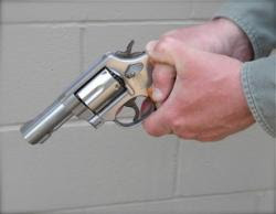 One of the first things about revolvers is that the way you grip them. You want the strong hand high on the backstrap, just like with a semi-auto, but the revolver grip is completely different. On semi-autos the thumbs are normally stacked, one held over the other. With revolvers the strong thumb is curled down, just as if you were making a fist, and the support thumb crosses over it. Gripping the revolver the wrong way can lead to problems.