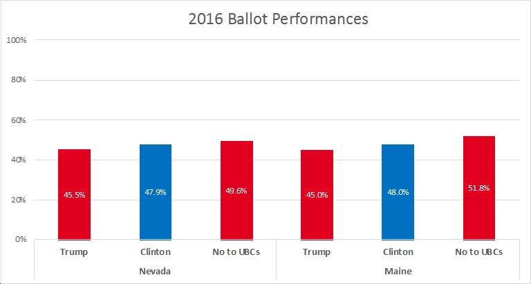 - In both Maine and Nevada, opposition to the background check ballot measures outpaced support for both candidates in the Presidential election.